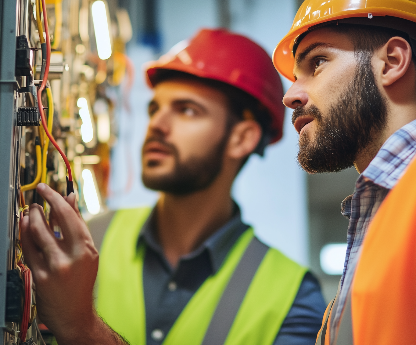 jiuwei.zhang_Photo_of_two_electricians_working_on_a_roof_with_s_bd3abc3a-d4b3-4aae-a69f-2823d7190178
